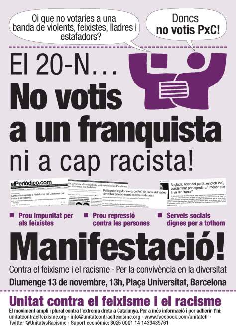 - Els detalls per a la distribució dels cartells són els mateixos que per a les octavetes: https://unitatcontraelfeixisme.wordpress.com/2011/10/26/distribucio_octavetes