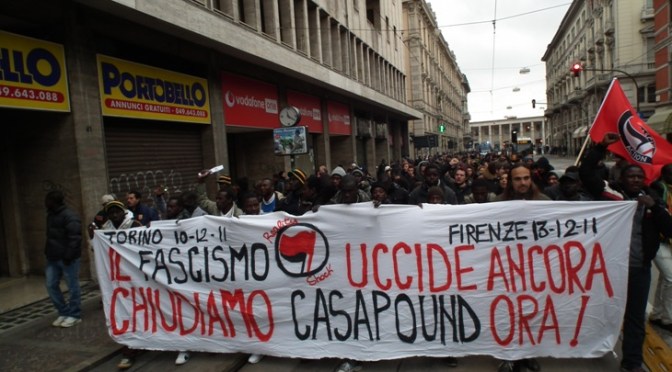 Imatges de manifestacions a diverses ciutats italianes, en protesta a l’assassinat de dues persones d’origen senegalès, dut a terme el passat 13 desembre per un simpatitzant de Casa Pound:
