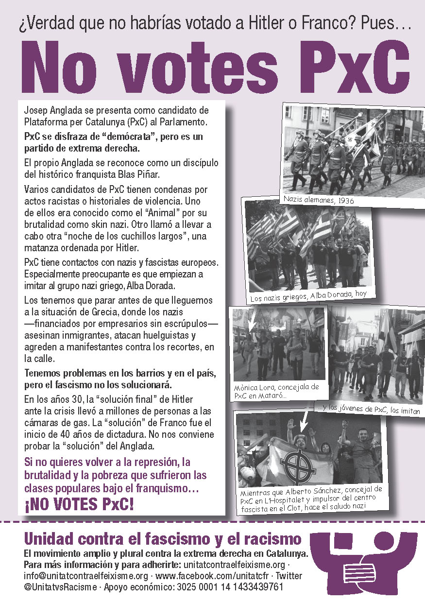 Si no quieres volver a la represión, la brutalidad y la pobreza que sufrieron las clases populares bajo el franquismo… ¡No votes PxC!