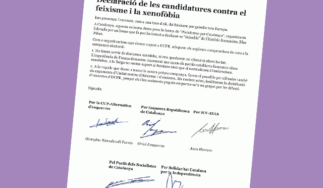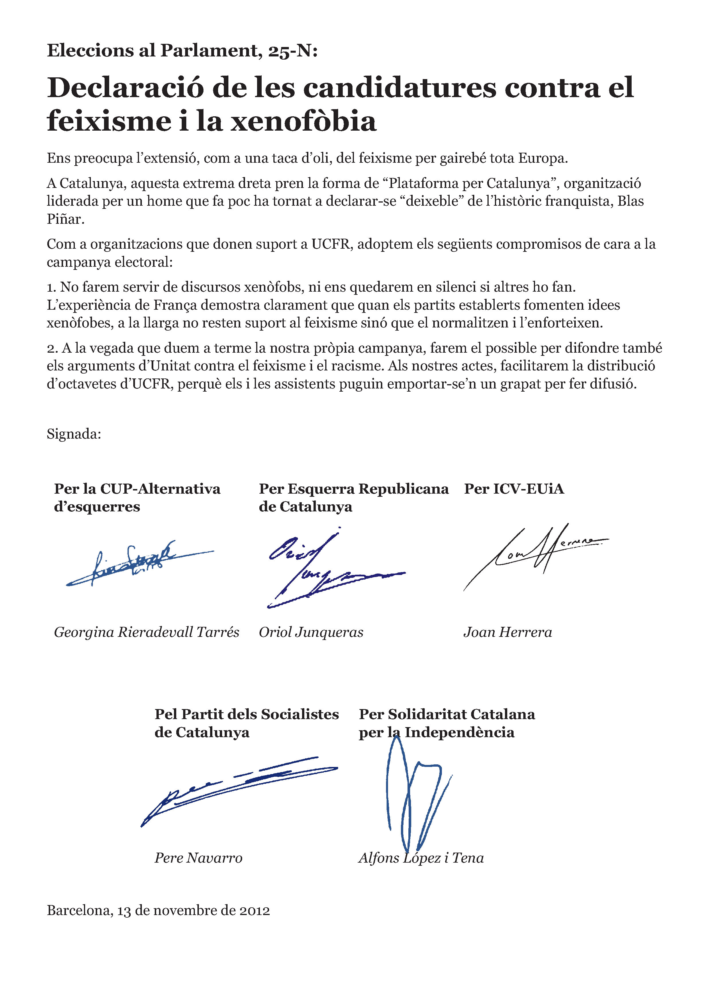 Eleccions al Parlament, 25-N: Declaració de les candidatures contra el feixisme i la xenofòbia