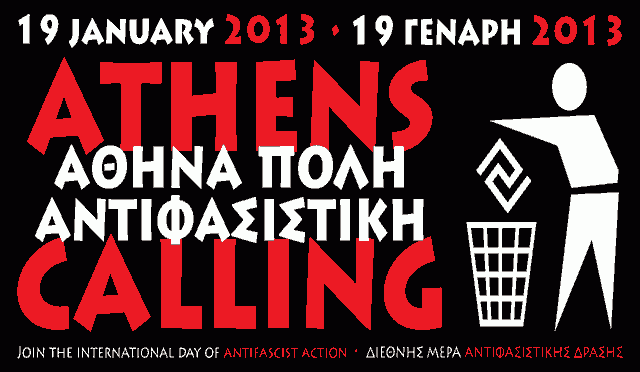 El 19 de gener de 2013, la plataforma unitària contra el feixisme i el racisme a Grècia —amb el suport d’un conjunt de moviments socials, associacions d’immigrants i gent de la cultura— convoca un dia d’acció contra els neonazis d’Alba Daurada, i contra les idees racistes que ells fomenten.