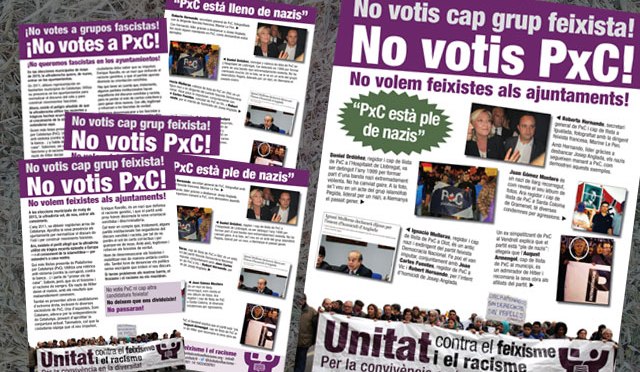 Qui més llistes presenta és Plataforma per Catalunya (PxC). Utilitza una retòrica anti-sistema (contra la corrupció, contra la banca…) i parla de “primer els de casa”. Sabem, però, que és el feixisme i el racisme de sempre. Els nazis de Hitler deien el mateix, amb els resultats que malauradament coneixem.