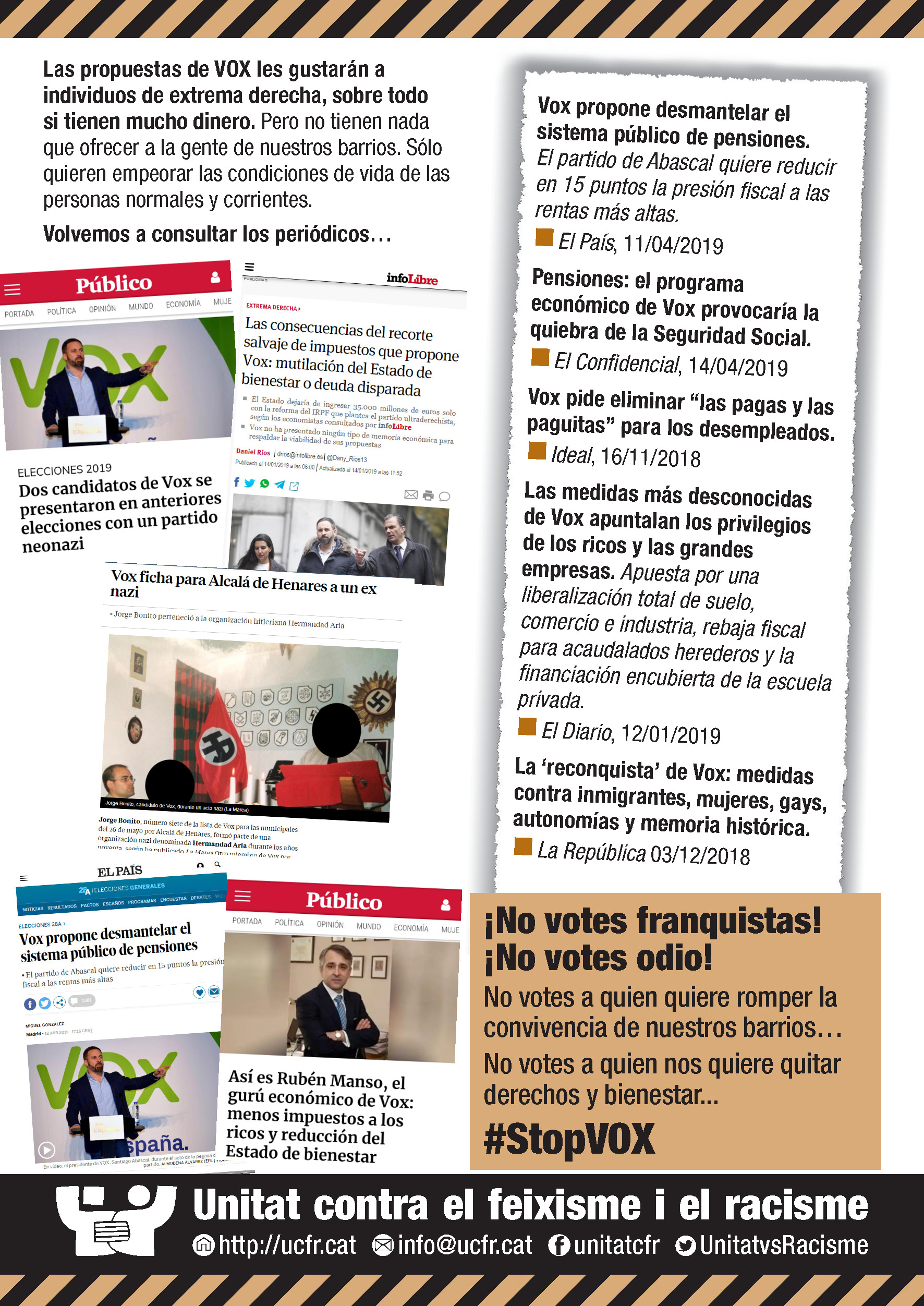 Las propuestas de VOX les gustarán a individuos de extrema derecha, sobre todo si tienen mucho dinero. Pero no tienen nada que ofrecer a la gente de nuestros barrios. Sólo quieren empeorar las condiciones de vida de las personas normales y corrientes.