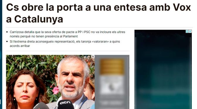 Ja sabem que Cs ha arribat a pactes (explícits o implícits) amb el partit d’extrema dreta, VOX, a diferents territoris de l’estat, però recentment havien donat senyals de voler allunyar-se’n. Se suposava que havien reconegut l’amenaça que representa VOX per als drets humans i la democràcia.