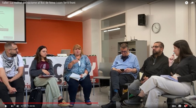Es discuteixen casos específics i estratègies que s’utilitzen per a abordar i denunciar situacions de racisme en l’àmbit laboral. Es parla de la importància de la informació i la voluntat per a buscar solucions i es destaca la necessitat d’una xarxa de suport entre organitzacions i sindicats per a lluitar contra el racisme de manera més efectiva.