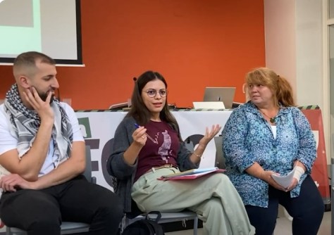 Presenten: Salma Laghzaoui Al Bachiri, gestora davant casos del racisme laboral; Paula Rossi, SOS Racisme.